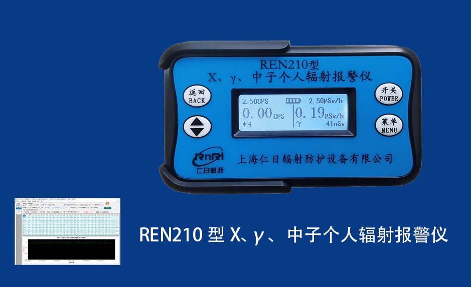 REN210型X、γ、中子個(gè)人輻射報(bào)警儀內(nèi)置SiPM和鋰玻璃晶體組成中子探測(cè)器儀器,采用反照率方式探測(cè)中子射線,同時(shí)也能探測(cè)X、γ射線。因此它可同事監(jiān)檢測(cè)X、γ、中子三種射線。能顯示工作場(chǎng)所的劑量當(dāng)量率和累積劑量,更換電池時(shí),日期及累積數(shù)據(jù)能永久保存。可選配RenRiPersonal個(gè)人劑量管理軟件,該軟件可存儲(chǔ)多個(gè)人的歷史數(shù)據(jù),能記錄日累積、月累積、年累積、輻照時(shí)長(zhǎng)、計(jì)算平均劑量率、扣除或不扣除本底輻射,且以文字和圖譜的方式展現(xiàn)數(shù)據(jù)。廣泛應(yīng)用于環(huán)保、化工、水泥、煤礦、土木工程、石油、醫(yī)院、疾控、進(jìn)出口商檢、核電、加速器、機(jī)場(chǎng)、中子源庫(kù)和其他安檢、邊境控制海關(guān)檢測(cè)等領(lǐng)域中的工作人員進(jìn)行個(gè)人安全防護(hù)監(jiān)測(cè)及放射性提示。